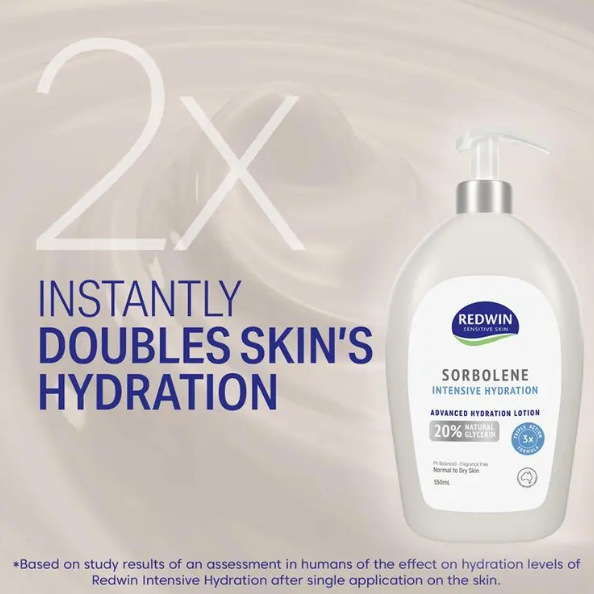 Redwin Sorbolene Intensive Hydration Lotion uses Redwin's same reliable Sorbolene, plus 20% Natural Glycerin to provide advanced hydration power.